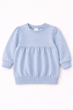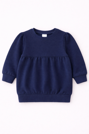 Our Bubble Sweatshirt is a customer favorite, designed with a charming girly silhouette and made from 100% combed cotton for a soft, high-quality feel. Featuring trendy puff sleeves and a flattering empire waist, this boutique-style kids sweatshirt is perfect for everyday wear or custom designs.