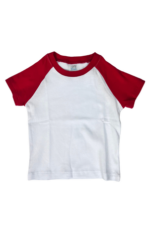 These Raglans are short sleeve and available in Green and Red only.